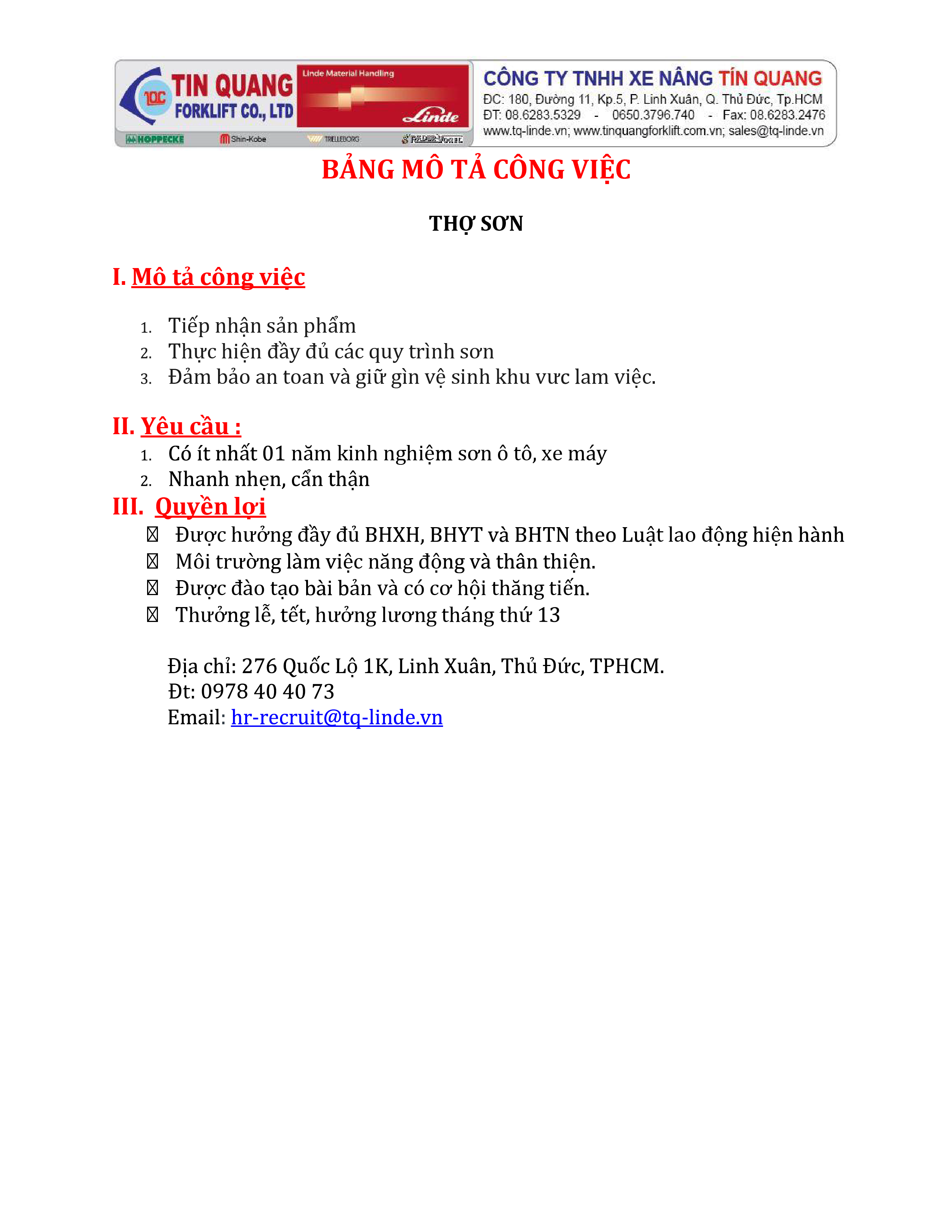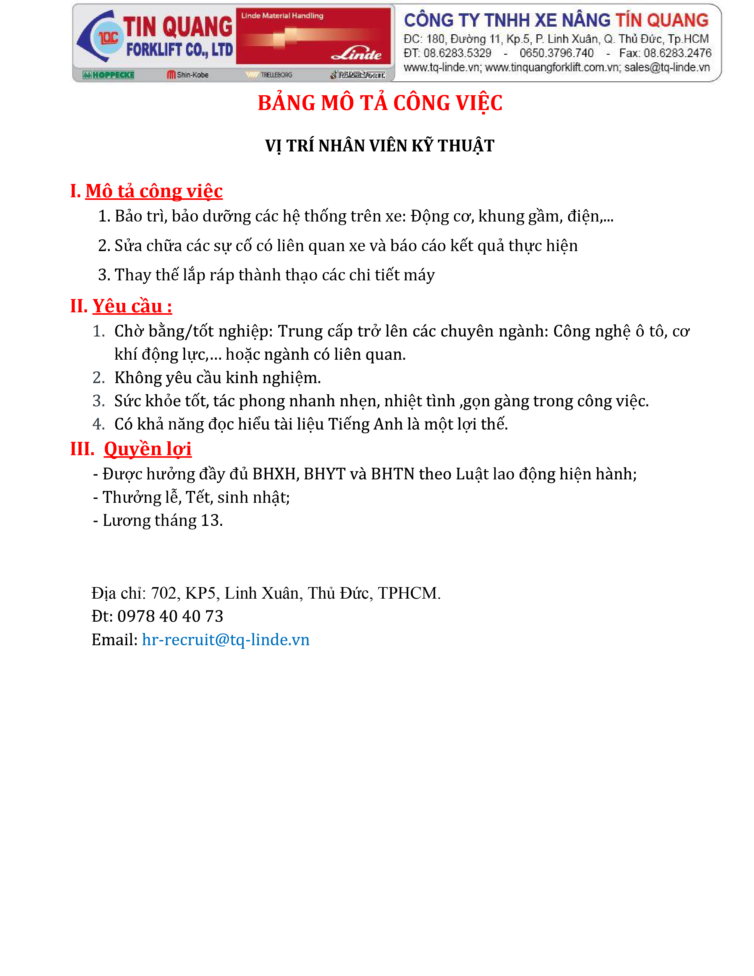 ≡ TUYỂN DỤNG CÁC VỊ TRÍ